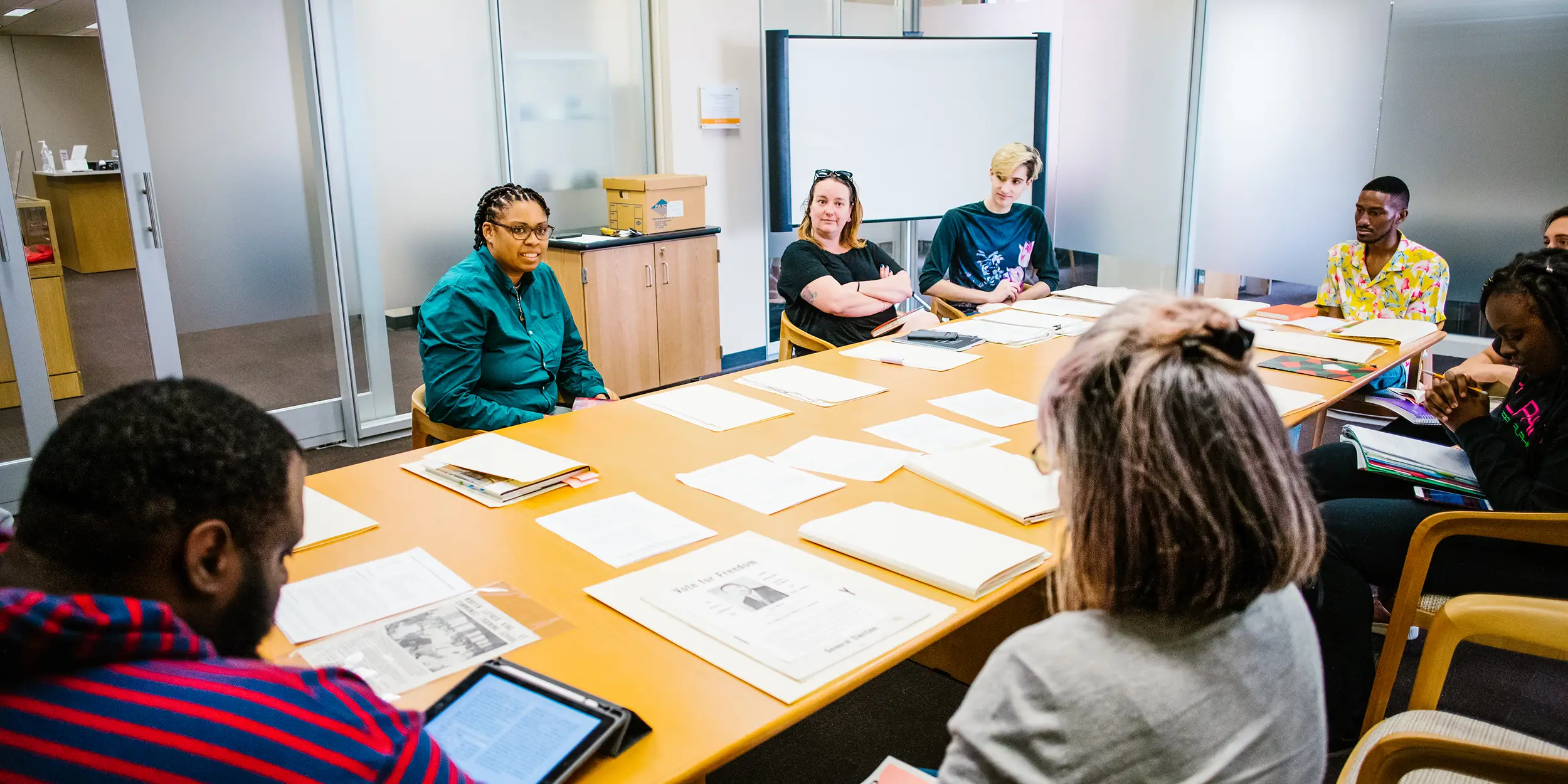 Dr. Shaneda Destine, Assistant Professor in the Department of Sociology and the Department of Africana Studies, holds class in the Special Collections section of John C. Hodges Library on March 14, 2019. Photo by Steven Bridges.